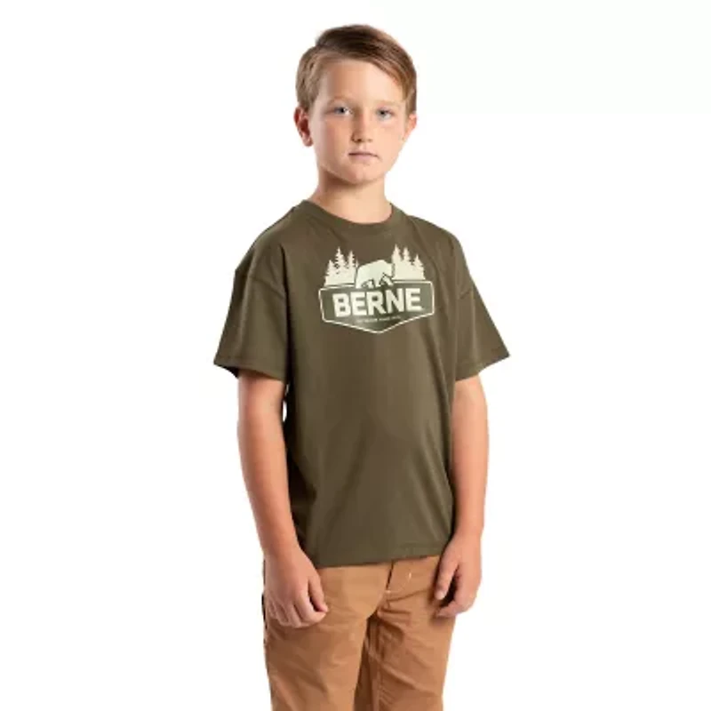 Berne Little & Big Kid Unisex Crew Neck Short Sleeve Moisture Wicking Active T-Shirt