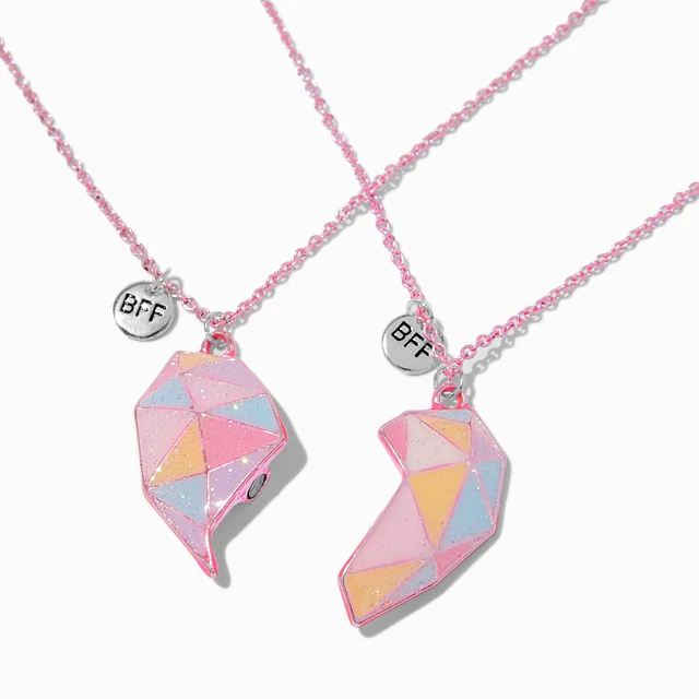 Best Friends Geometric Pink Pastel Split Heart Pendant Necklaces - 2 Pack
