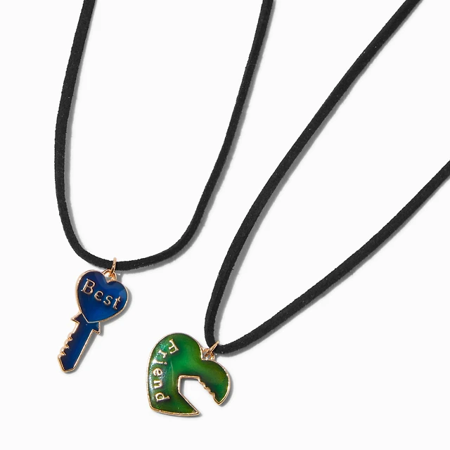 Best Friends Mood Lock & Key Pendant Black Cord Necklaces - 2 Pack