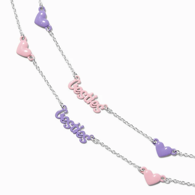 Best Friends Pink & Purple Besties Heart Pendant Necklaces - 2 Pack