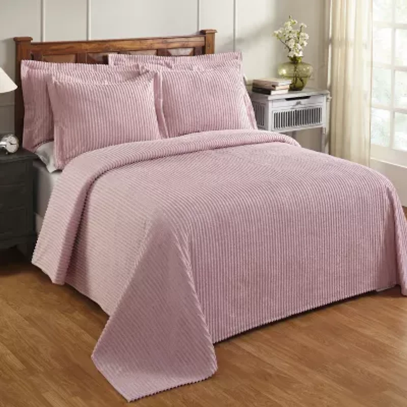 Freshen up your bedroom interiors with the enchanting style of Jullian Collection of bedspreads. Featuring a beautiful, tufted stripe design in warm tones, it is ideal to use as a layering piece or an alternative to your comforter for a new solid appeal. This cotton chenille tufted bedspread at Better Trends is soft and plush and offers immense comfort that you desire. Its stripe motif can complement easily to your existing decor and will sure to add a new decorative element to your bedroom. This stunning Jullian Collection is made of 100% Cotton Chenille and is tufted into a bold Stripe Design. The bedspread comes all the way down to the floor with button bell corners. this collection of bedspreads is available in 12 colors and 4 sizes. Twin Size is 81" x 110", Full Size is 96" x 110", Queen Size is 102" x 110" & King Size is 120" x 110". Matching shams are included. Twin size comes with 1 standard sham of 21" x 27", Full/Double and Queen sizes comes with 2 standard shams of 21" x 27" and King size comes with 2 King Shams of 20" x 36".