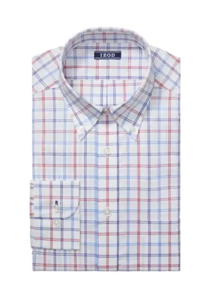 Designed with plenty of stretch, this dress shirt from IZOD is a handsome pick for business meetings and beyond. Button closure Button-down collar Long button-cuff sleeves Chest patch pocket Regular fit Imported Material & Care Cotton, polyester Machine washable