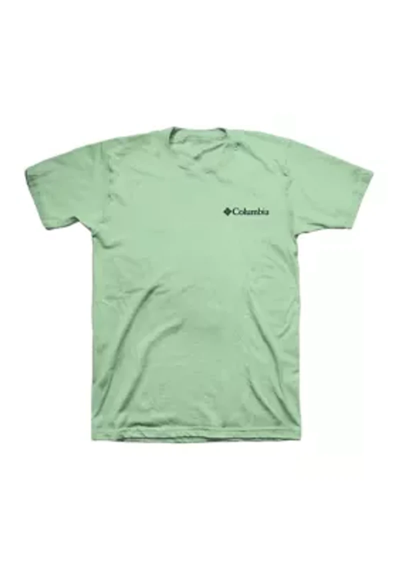 This classic, versatile Columbia shirt features a graphic print for all-day comfort and wearability. Pullover Crew neck, band collar Short sleeves Imported Material & Care 100% cotton Machine washable