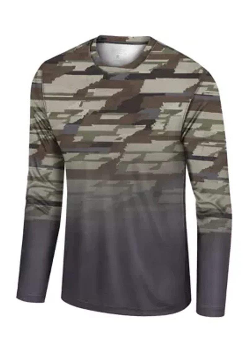 This camouflage T-shirt is a must-have for men who value comfort and style. Crafted from 100% polyester, it ensures breathability and durability, making it perfect for everyday wear. The pullover closure and round collar provide a relaxed fit, while the long non-cuffed sleeves offer added comfort. The camouflage pattern adds a touch of ruggedness to your look, making it suitable for both casual and outdoor activities. Don't miss out on this versatile T-shirt that combines functionality and fashion effortlessly. Pullover Round collar Long sleeves Camouflage pattern Imported Material & Care 100% Polyester Machine washable