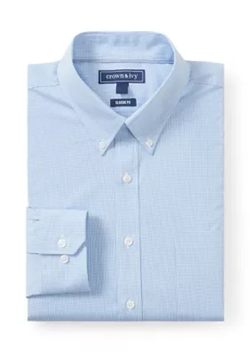This classic and versatile Crown & Ivy™ shirt features a subtle gingham print for all-day comfort and wear. Button closure Button-down collar Button cuff sleeves Gingham pattern Imported Belk Exclusive Material & Care Cotton, polyester, spandex Machine washable
