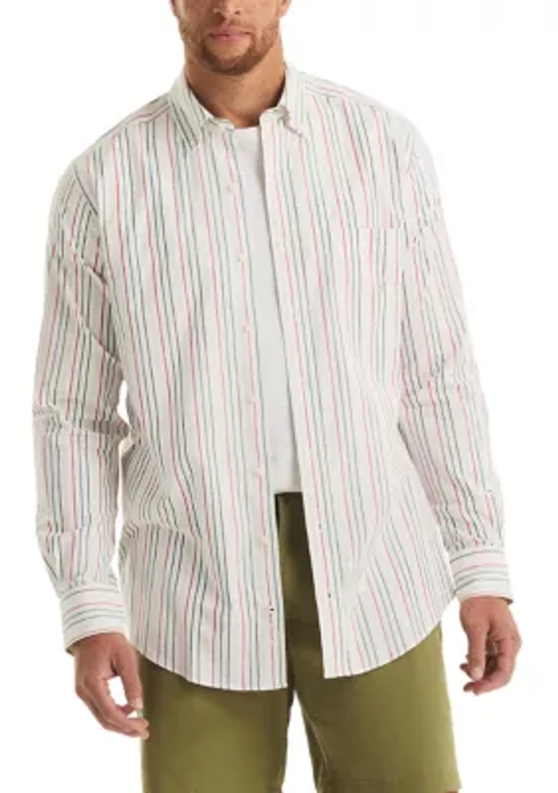 Crafted from breathable cotton, this striped shirt from Nautica offers all-day comfort and a polished look. Featuring a classic button-down collar and button cuff sleeves, it's designed for a perfect fit. Button closure Button-down collar Long sleeves with button cuffs Imported Material & Care Cotton Machine washable