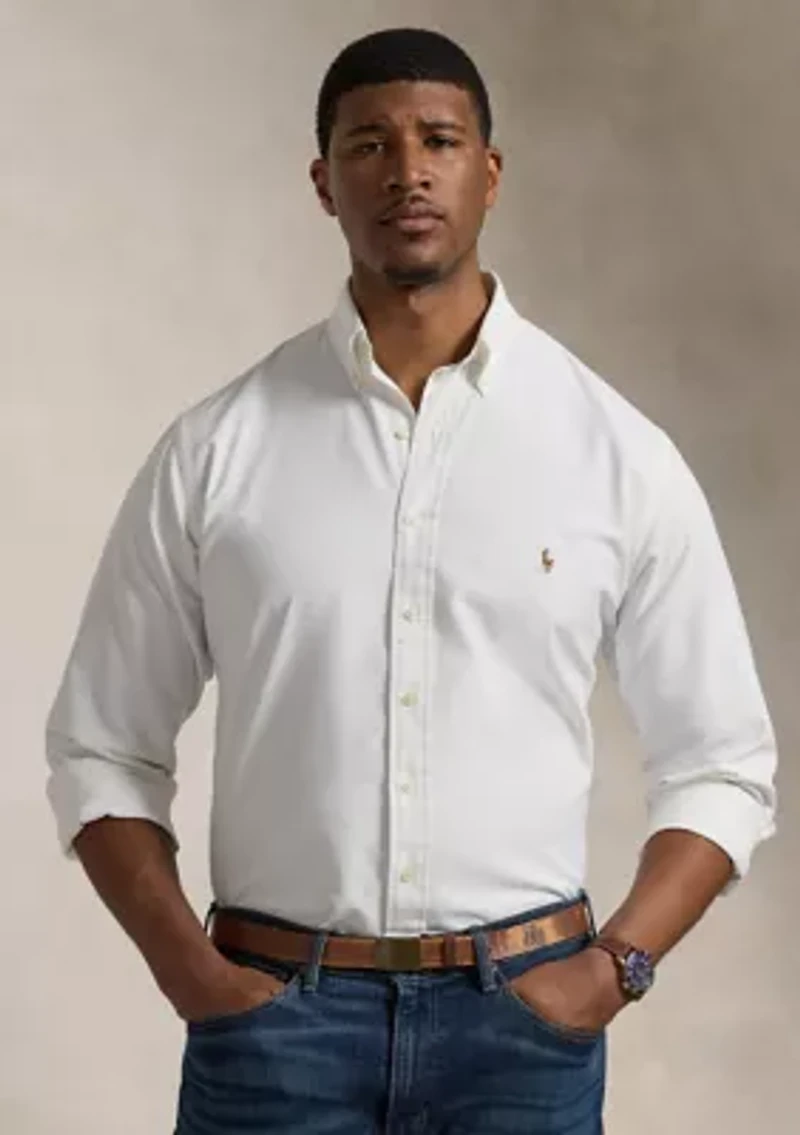 The Oxford shirt made its debut very early on in Ralph Lauren’s designs, and since then, it has solidified its status as a pillar of the Polo look. The fabric is developed with a secret wash that gives it instant character, ease, and a heathered softness. The formula is so unique, it’s been kept in a safe for more than three decades. In addition to details that evoke its prep-school inspiration, it offers a relaxed feel that produces what they call the perfect “rumple.” Today, Mr. Lauren continues to create countless variations of his iconic shirt, including this moisture-wicking version that helps to keep you cool, dry, and comfortable. Size Big 2X has a 35" back body length, a 22.25" shoulder, a 62.75" chest, and a 37.5" sleeve length. Sleeve length is taken from the center back of the neck. Size Tall 2L has a 37" back body length, a 22.75" shoulder, a 62.75" chest, and a 39.5" sleeve length. Sleeve length is taken from the center back of the neck. Button-down collar. Buttoned placket. Long sleeves with buttoned barrel cuffs. Split back yoke with a box pleat ensures a comfortable fit and a greater range of motion. Multicolored signature embroidered Pony at the left chest. A timeless gift for your next occasion. Imported Material & Care Polyester, nylon Machine washable