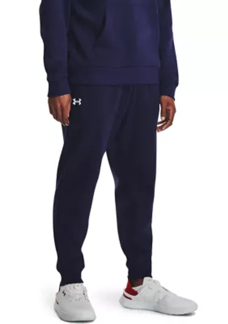 These Under Armour® pants feature an ultra‑soft, brushed interior, providing both warmth and plenty of room for comfortable movement. Finished with an elastic waistband, adjustable drawcord and convenient hand pockets, they’re perfect for casual days, workouts, or lounging in style. Tapered leg fit with ribbed cuffs Encased elastic waistband with external drawcord Open hand pockets & secure snap back pocket Athletic fit Imported Product Specifications 31" inseam Material & Care 80% cotton, 20% polyester Machine washable