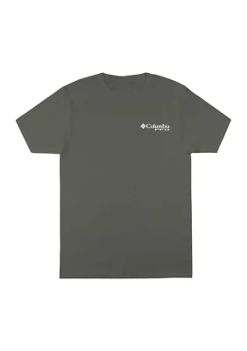 Perfect for days on the water or laid-back weekends, this Columbia t-shirt delivers casual comfort with outdoor-inspired style. Crafted from soft, breathable fabric, this tee features a classic crew neckline and a bold fishing-themed graphic that shows off your love for life outdoors. Designed for all-day comfort, it’s easy to pair with shorts, jeans or swim trunks for effortless, relaxed style. Pullover Crew neck Short sleeves Imported Material & Care Cotton, polyester Machine washable