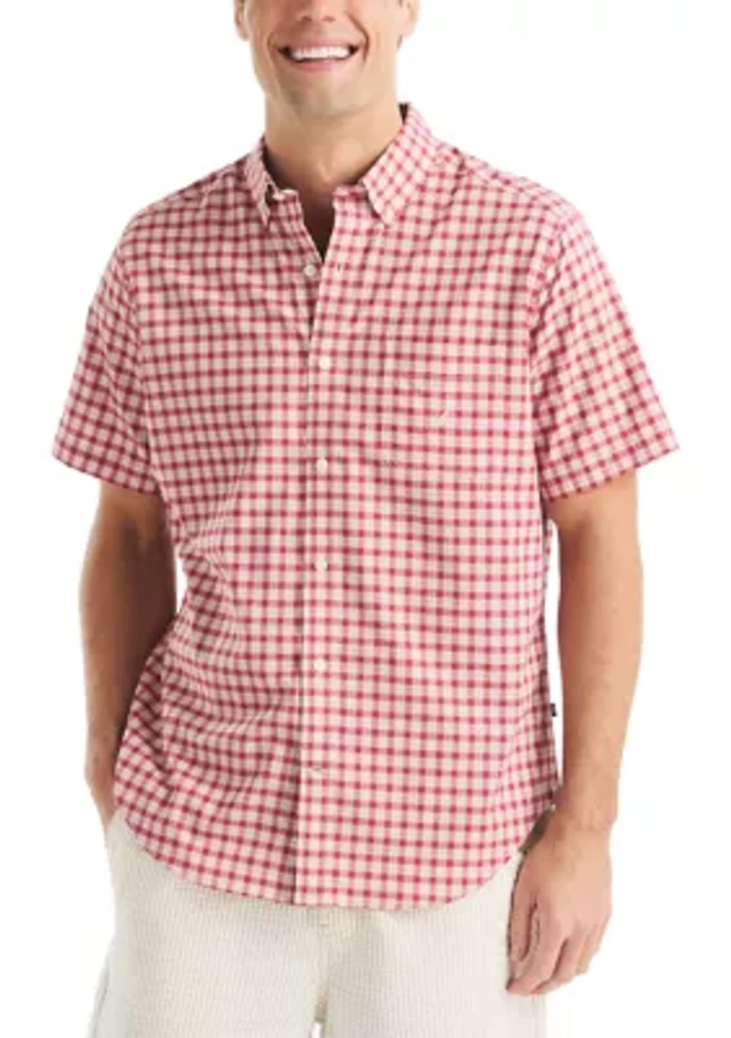 Perfect for warm weather and crafted from breathable tencel fabric, this Nautica shirt feels incredibly soft against the skin. The classic spread collar and button closure offer a polished look, while the short sleeves keep you feeling relaxed. Designed for a comfortable fit, this shirt is ideal for any casual occasion. Button closure Spread collar Short sleeves Imported Material & Care 100% Tencel Machine washable