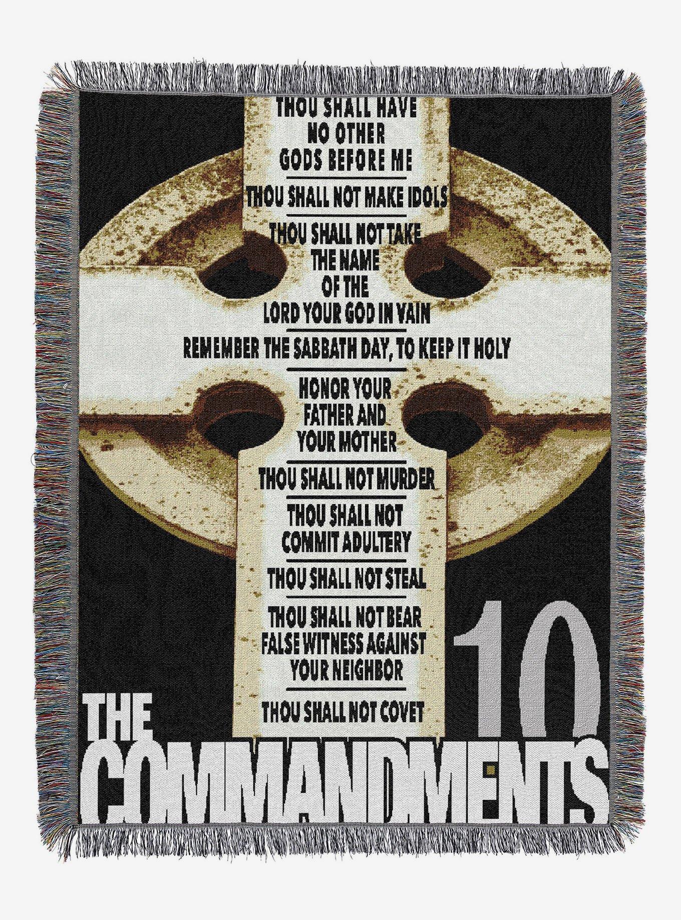 Make sure to treasure this Big Ten Commandments Woven Tapestry Throw Blanket by TheNorthwest. This MADE IN AMERICA 48"x 60" tapestry has decorative fringes around the outside edges, and is woven in finely colored thread to catch detailed colors and features. The high quality of the design and weaving process makes this throw a stand out choice as a room accent, bed covering, throw blanket or even a wall-hanging. Item cannot be shipped to P.O. Boxes