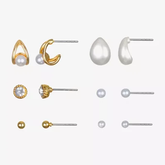 Bijoux Bar Delicates Gold Tone Womens Glass Simulated Pearl Round 6 Pair Earring Set