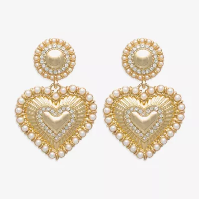 Bijoux Bar Gold Tone Womens Simulated Pearl Heart Drop Earrings