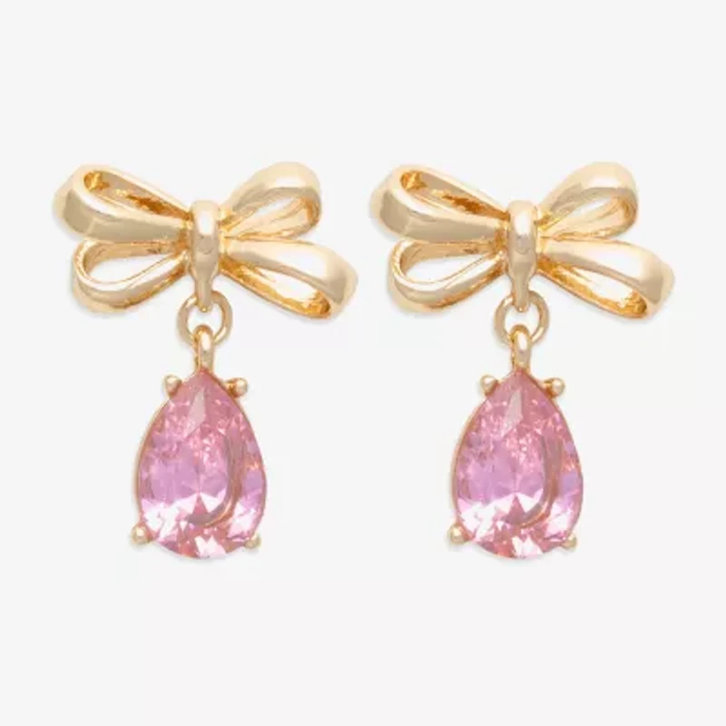 Bijoux Bar Gold Tone Womens Pink Cubic Zirconia Bow Drop Earrings