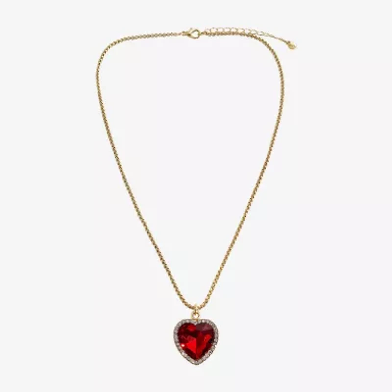 Bijoux Bar Gold Tone Womens Red Heart 18 Inch Pendant Necklace