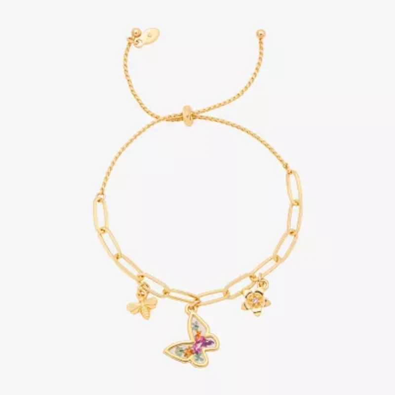 The Bijoux Bar women’s bracelet brightens up your day with its paperclip chain and playful butterfly, bee, and flower charms. It stays secure with a bolo clasp, making it a lovely accessory to wear on its own.