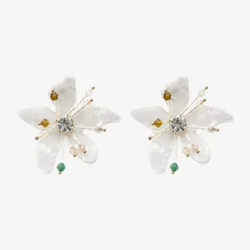 Bijoux Bar Womens Glass Flower Drop Earrings