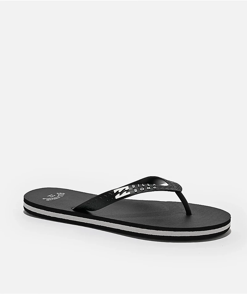 Be prepared for a beach day or just hot weather with the water-friendly Tides 2.0 sandals from Billabong, landing in a solid black thong-style silhouette with embossed branding on the synthetic leather toe strap. Built with a reinforced toepost and a