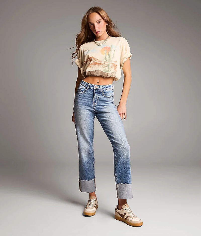 Comfort Stretch (Low Stretch) -Classic denim that has just enough stretch that will only makeit fit better over time. High rise Cuffed - extend your inseam 4" when uncuffed Slim through the hip and thigh 15" bottom opening Frayed hem details
