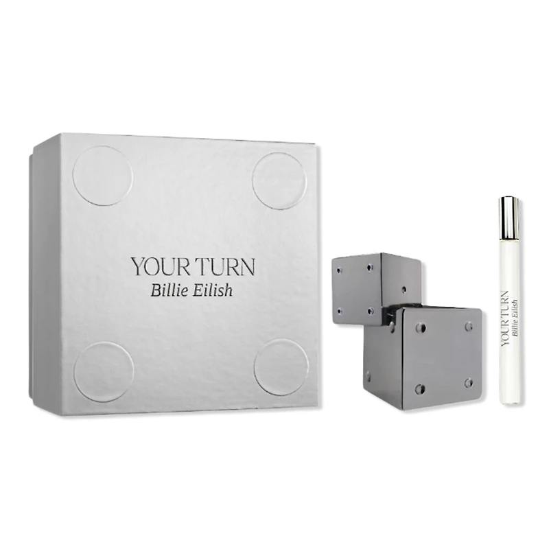 YOUR TURN 2 PC SET 3.4 OZ + TS. Fragrance Family: Woody Fresh. Key Notes: Top: Bergamot Peel, Cardamom Pod, Fresh Ginger. Mid: Velvet Peach Skin, Night Blooming Jasmine, Coconut Water. Dry: Sandalwood Australia, Captive Musks, Upcycled Sylvamber. Includes: Your Turn Eau de Parfum (3.4 oz). Your Turn Eau de Parfum (0.33 oz).