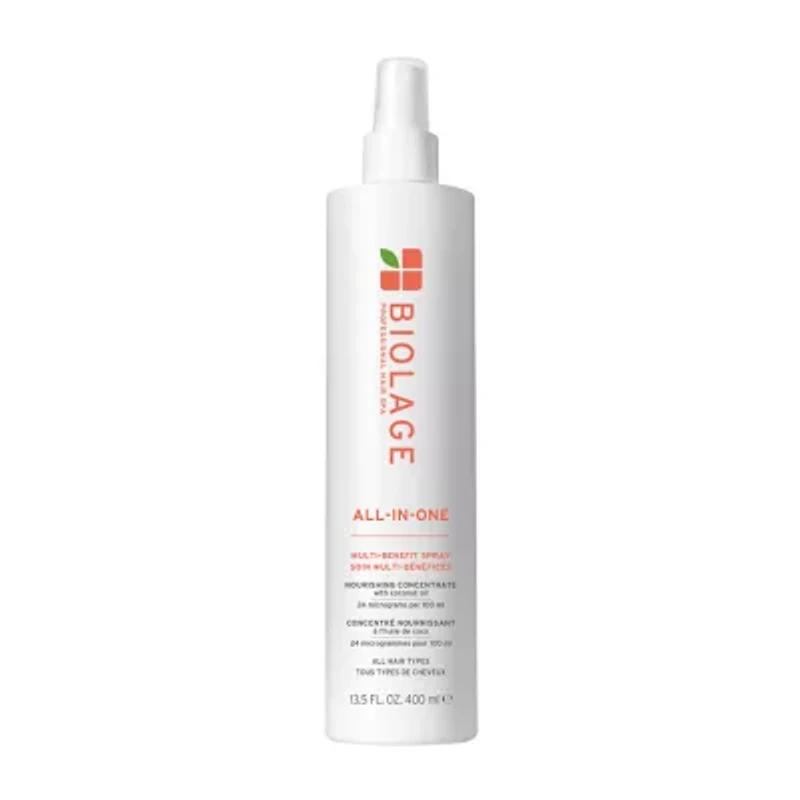 Biolage All-in-One Multi-Benefit Spray with coconut oil is for everyone, everywhere, and every time. No matter the hair texture or hair moment, this multi-tasking spray is your new go-to for controlled, healthy-looking hair.