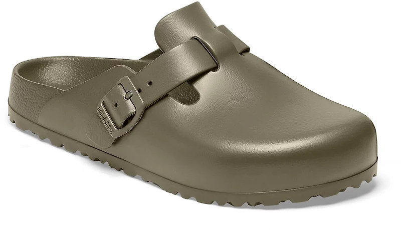 Saddle up with the Birkenstock Men's Boston EVA Clogs. The EVA construction affords durability, while the waterproof design helps keep your feet dry. Same comfort as original Birkenstock clogs, now in a water-friendly, ultra lightweight and flexible material. Throw in your gym bag and slip on after your game or practice. Take them to the pool or the beach. Easy to clean, easy to wear. .
