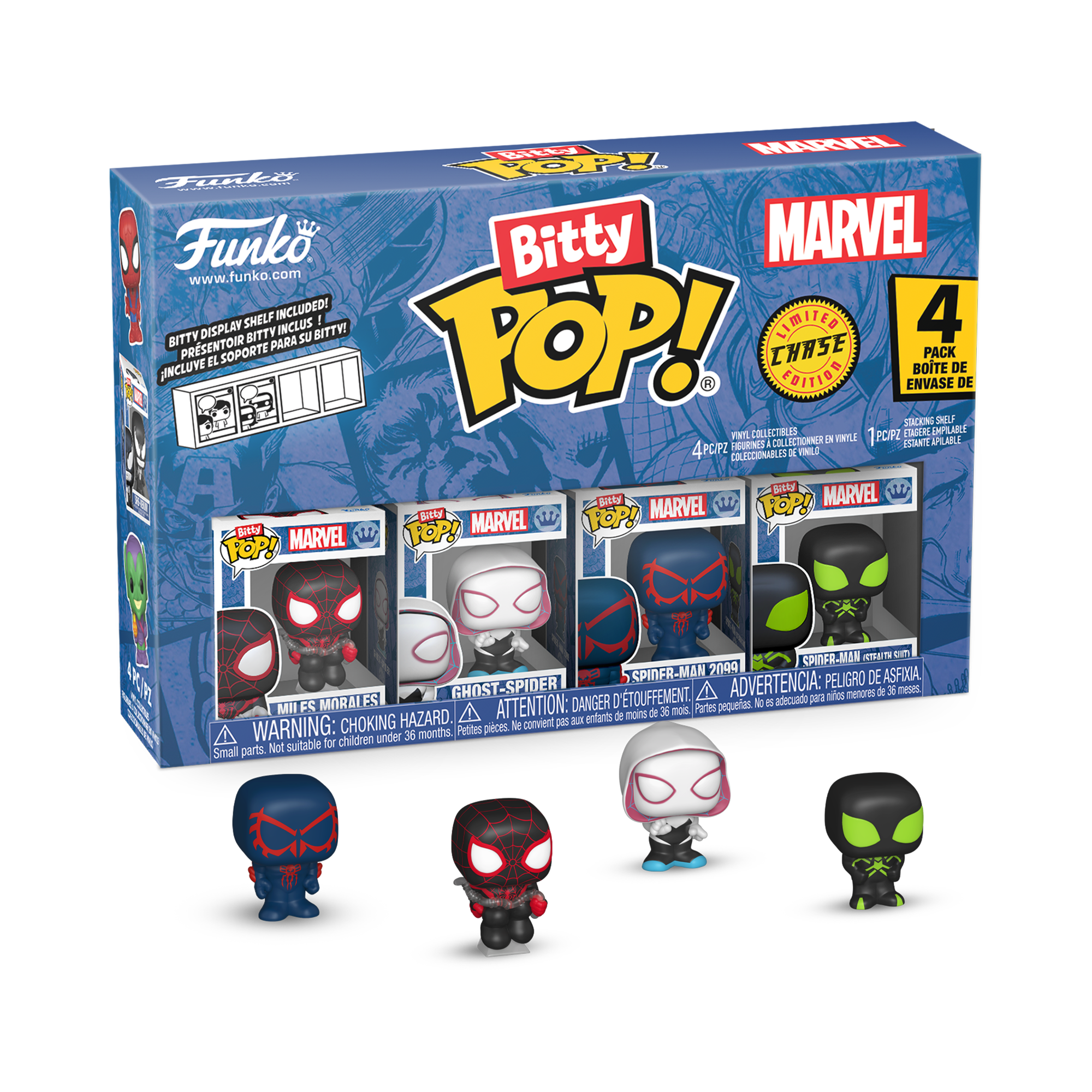 Funko Bitty POP! Marvel Vinyl Figure Set 4-Pack (Miles Morales, Ghost-Spider, Spider-Man 2099, and Mystery Pop!)