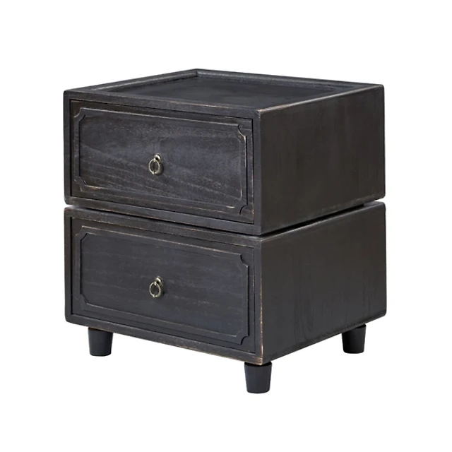 Midnight Black Wood 2-Drawer Modern Nightstand