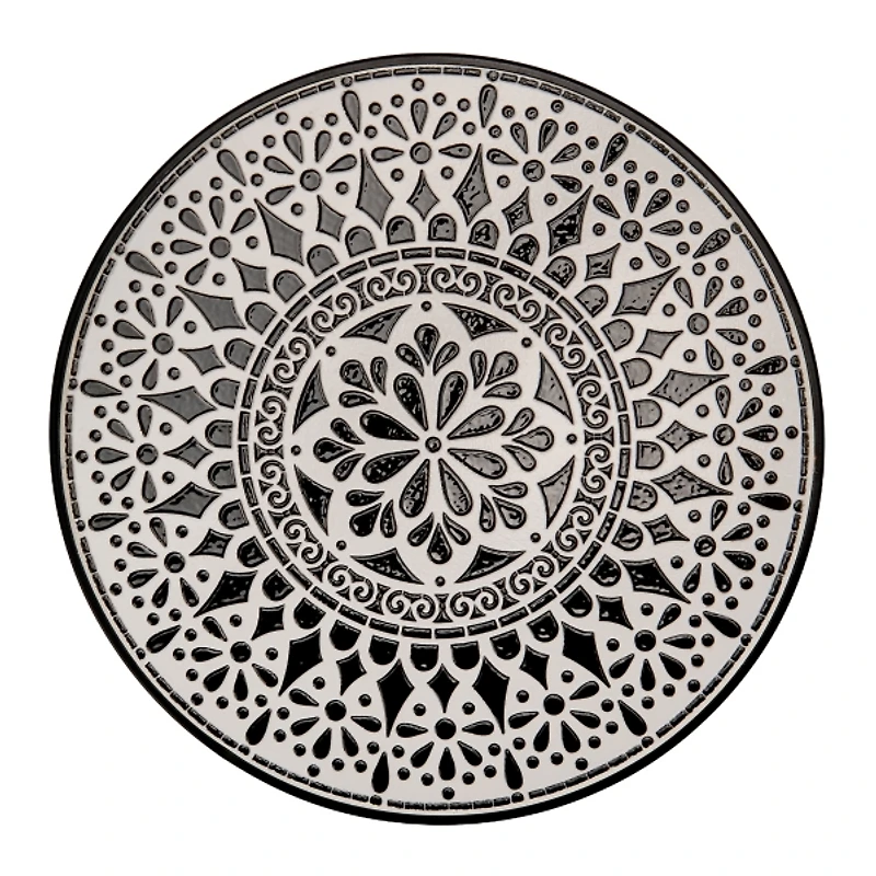 Bring a charming touch to your yard or garden with our Black and White Mosaic Stepping Stone! Featuring a mesmerizing tile design, this stepping stone adds an eye-catching look to your home. Stepping stone measures 0.75H x 11.75 in. in diameter Crafted of resin Round shape Features a mosaic design Hues of black and white Safe for outdoor use Care: Wipe with a soft, dry cloth. Contact your local Kirkland’s store for availability. Quantities and selection may vary by location. Sold in stores under item number 338014.
