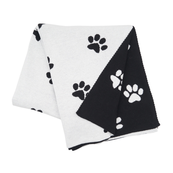Put the cutest, cozy touch on your sofa or bed with this Black and White Paw Print Throw. It makes a perfect gift for the dog or cat person in your life! Throw measures 60L x 50H in. Crafted of cotton and polyester Features a reversible paw print pattern Hues of black and white Care: Machine wash cold. Tumble dry low or air dry. This item is available at Kirklands.com only, not available in stores. Please note: this item cannot be shipped to APO/FPO addresses.
