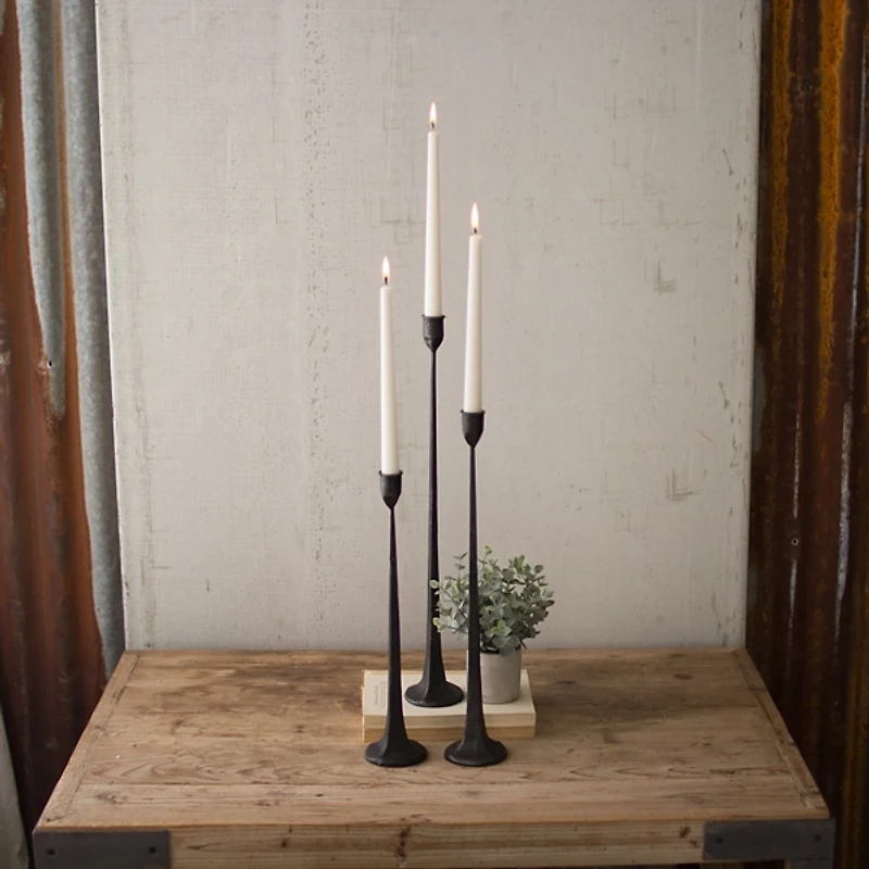 Black Cast Iron Taper Candle Holders, Set of 3