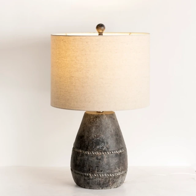 Lalia Home 18" Antique Brass Concrete Table Lamp with Linen Shade