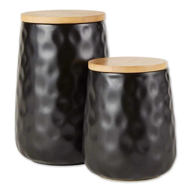 Black Dimpled Bamboo Canisters, Set of 2