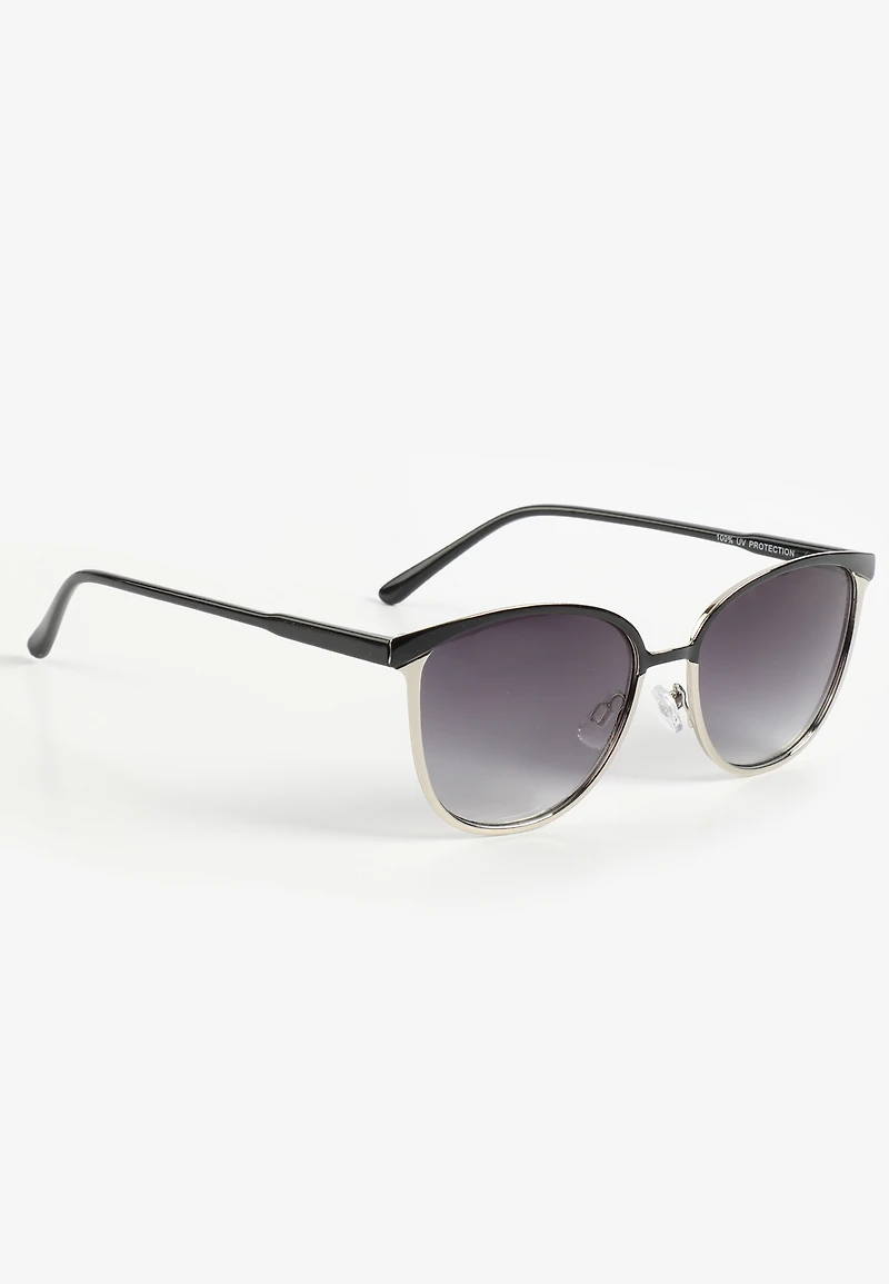 Black Enamel Silver Metal Round Sunglasses in Chattanooga, TN