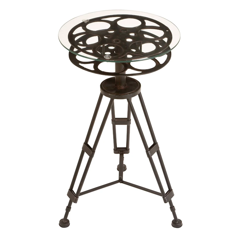 Very unique accent furniture that makes a great gift for film students, movie buffs, or a perfect end table in your theater room or office. Use it as an accent piece in the living room, library, bedroom, waiting areas, or hallways of you home.Details:Black and clear25" x 15" x 15"Pad stoppers at baseGlass and metalSome assembly requiredShipped in 1 cartonRecommended for indoor use only