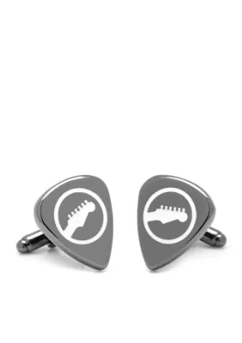 These rockin' accessories were made for the guitar player and music enthusiast in your life! Featuring a design made to look like an authentic guitar pick, these Guitar Pick Cufflinks are elegantly sleek with a polished gunmetal finish and feature a stylized logo of the head of a guitar in white enamel. 0.8-in. x 0.75-in. Bullet back closure Polished finish Imported Material & Care Black plated base metal, enamel Clean with a soft cloth