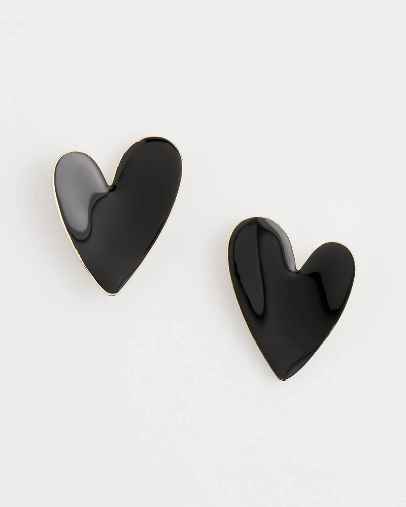 Fall in love with our Black Heart Earrings. Made with epoxy, titanium, and brass, perfect for embracing a loving feeling and fabulous style. Featuring Chico's proprietary No Droop® technology to create statement styles without the weight. Part of our Valentine’s Collection.
