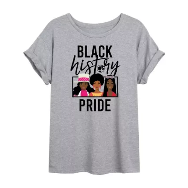 Black History Month Pride Womens Juniors Scoop Neck Short Sleeve Regular Fit Barbie Graphic T-Shirt