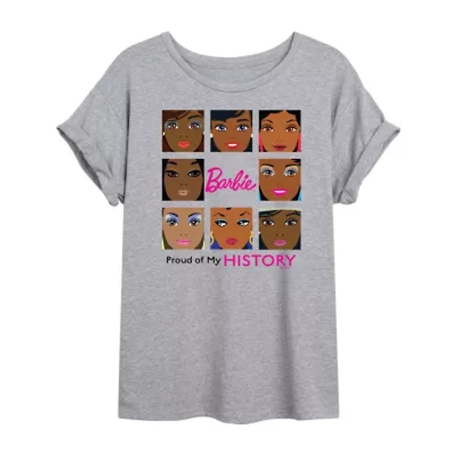 Black History Month Proud Of My Tee Womens Juniors Scoop Neck Short Sleeve Regular Fit Barbie Graphic T-Shirt