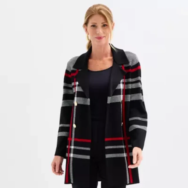 Black Label by Evan-Picone Womens Long Sleeve Open Front Cardigan