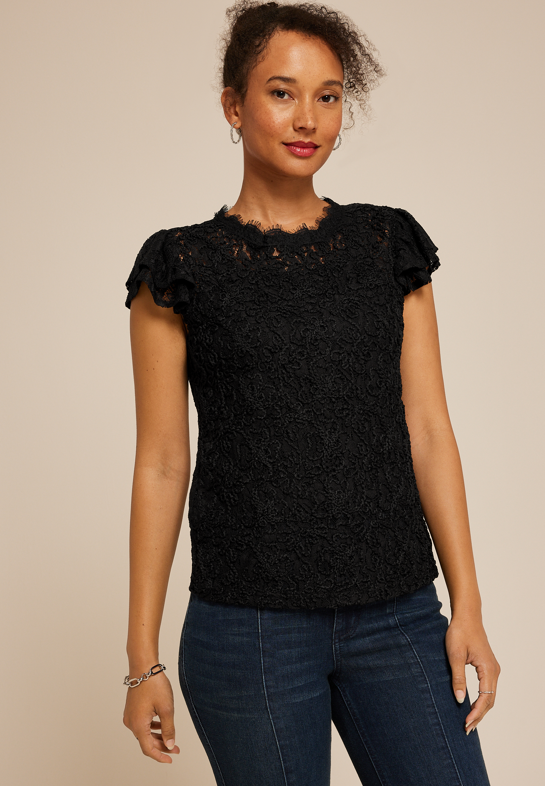 Black Lace Short Sleeve Blouse in Chattanooga, TN
