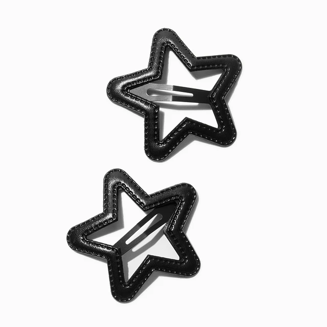 Black Leather Star Cut-Out Snap Hair Clips - 2 Pack