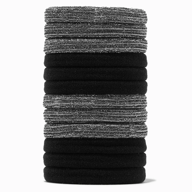 Black Lurex Rolled Hair Ties - 12 Pack