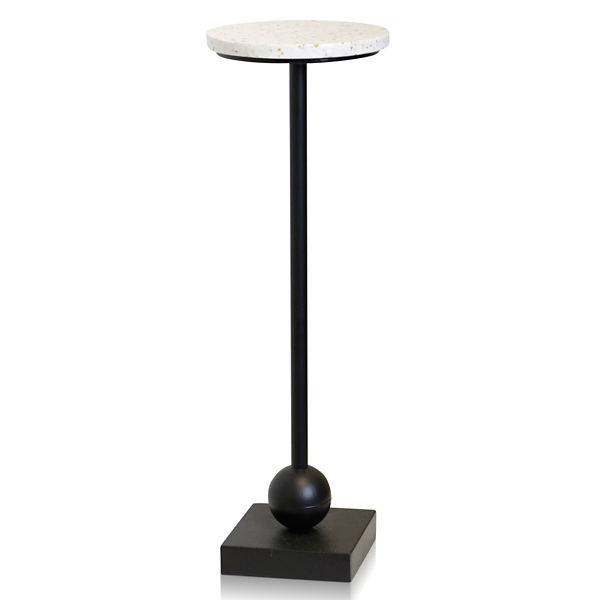 Whether you're sipping a martini or your favorite dry red, our Black Marble Top Pedestal Cocktail Table is the perfect place for you to set your glass. You'll love how the gold-flecked tabletop shimmers in your space. Cocktail table measures 24H x 8 in. in diameter Crafted with a metal frame and a marble tabletop Black frame finish with a white and gold flake top Features a weighted pedestal base design Weight capacity: 20 lbs. Some assembly required Due to the production process, each piece is unique and no two are exactly alike. Not intended for commercial use Care: Wipe with a soft, damp cloth. Not safe for outdoor use. This item is available at Kirklands.com only, not available in stores. Please note: this item cannot be shipped to APO/FPO addresses.