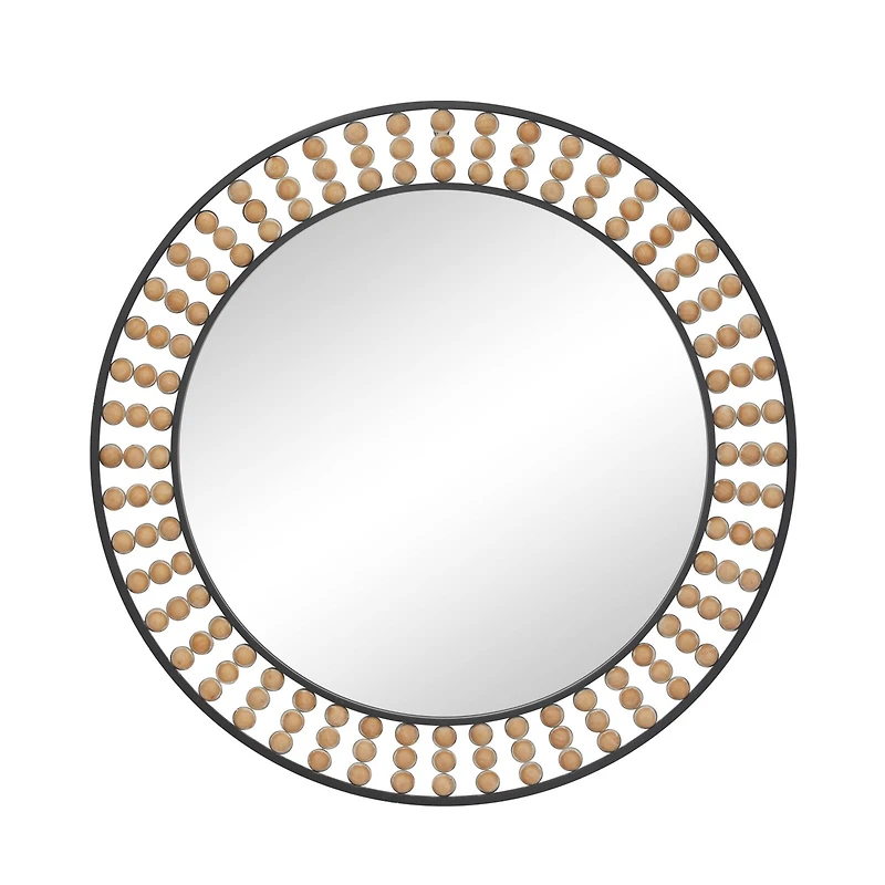 Add an illusion of space to your Bohemian-themed home space with this framed round mirror displayed on your walls. Wall mirrors offer a reflective property that helps naturally brighten up any room in your home. Complements plain and neutral-toned walls to accentuate the bold structure and design. Shipped in one carton. Furnished with back hooks for easy hanging. Suitable for indoor use only. Bohemian design.