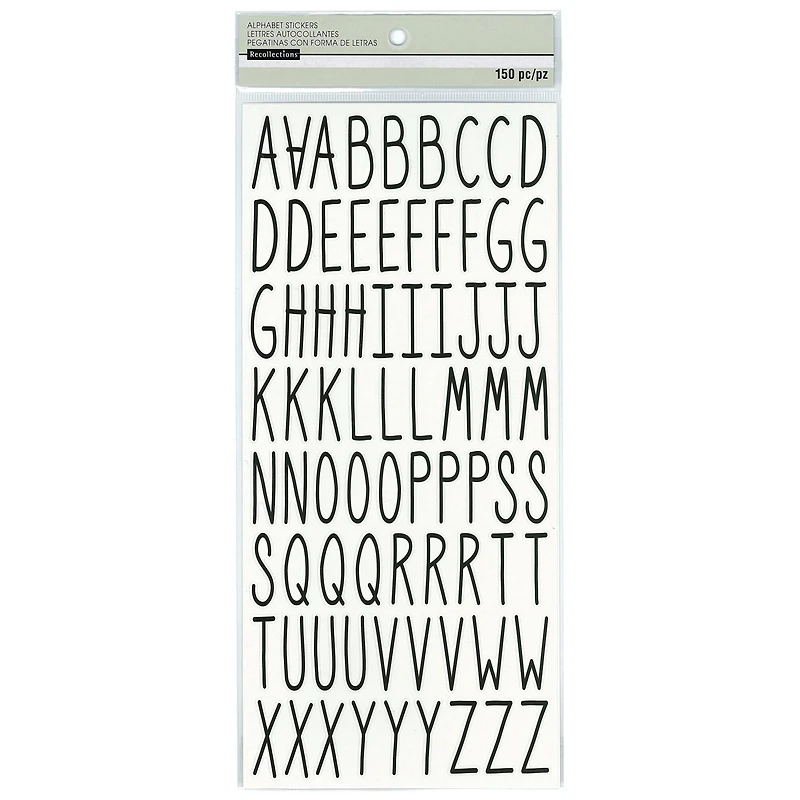 Personalize handmade cards with beautiful quotes and phrases using these alphabet stickers by Recollections. You can also use them to make labels for your planners, gift tags and photo albums. Details: Black 1.375" (3.49 cm) letter size12" x 5.5" (30.48cm x 13.97cm) sheet size 2 sheets with 150 total stickers Paper