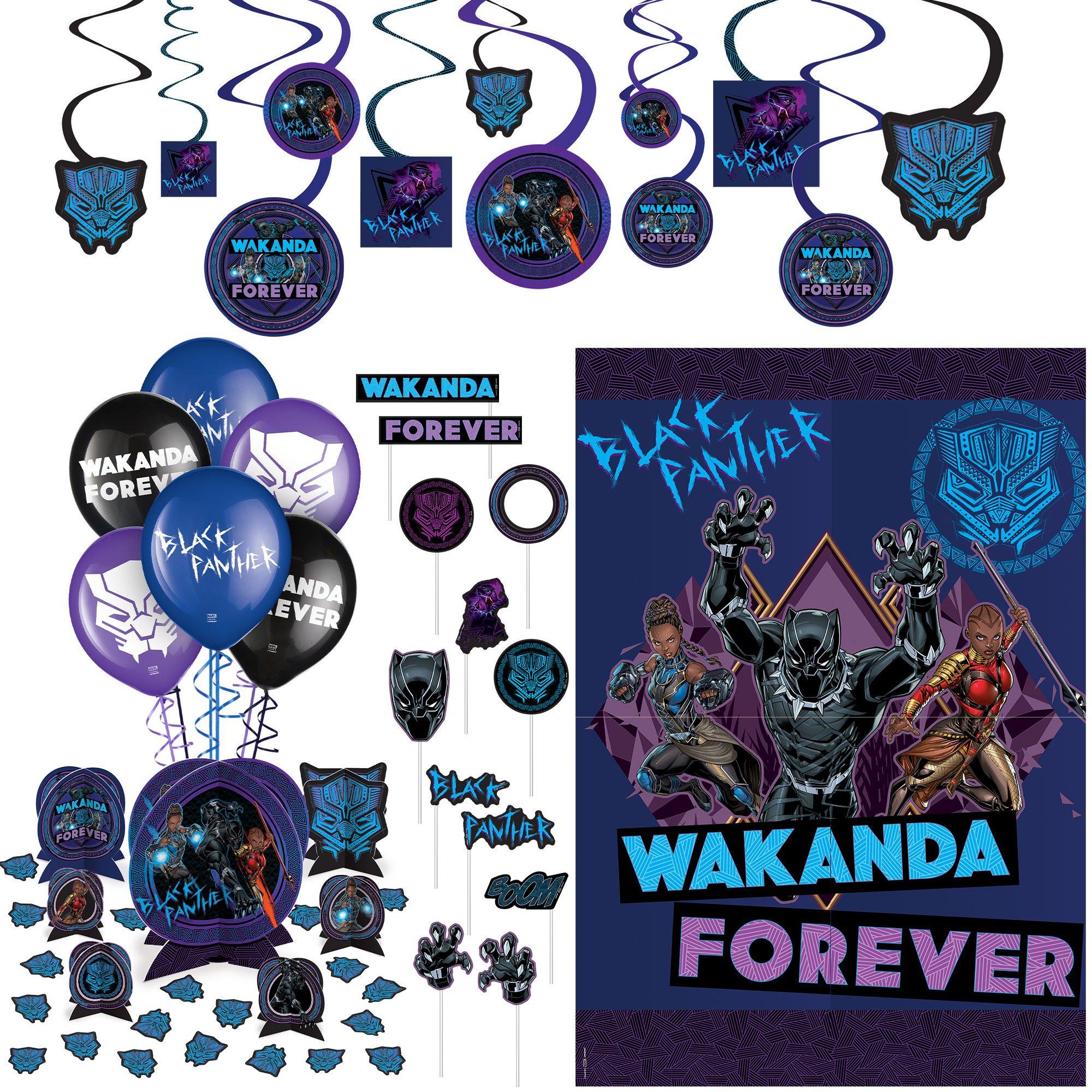 Black Panther Wakanda Forever Party Decorating Supplies Pack - Kit Includes Centerpieces, Themed Latex Balloons, Scene Setter, Photo Booth Props, & Swirl Decorations