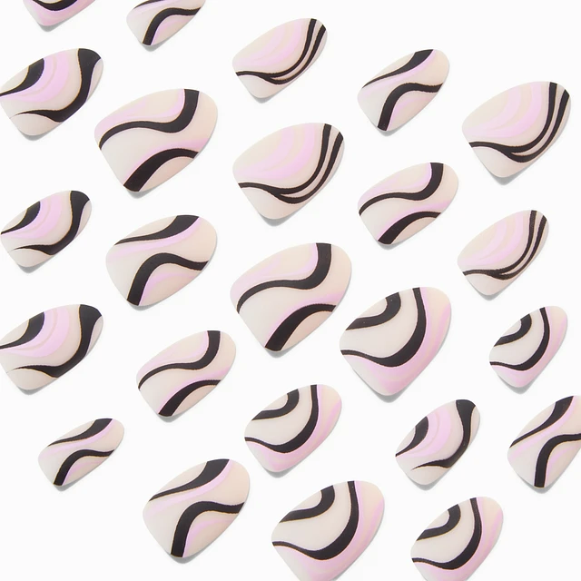 Black & Purple Swirl Almond Vegan Faux Nail Set - 24 Pack