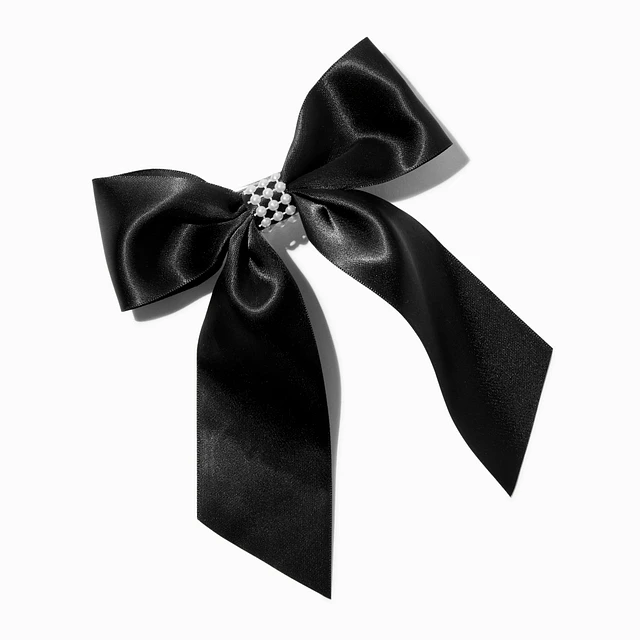 Black Diamante Satin Drop Hair Bow Clip