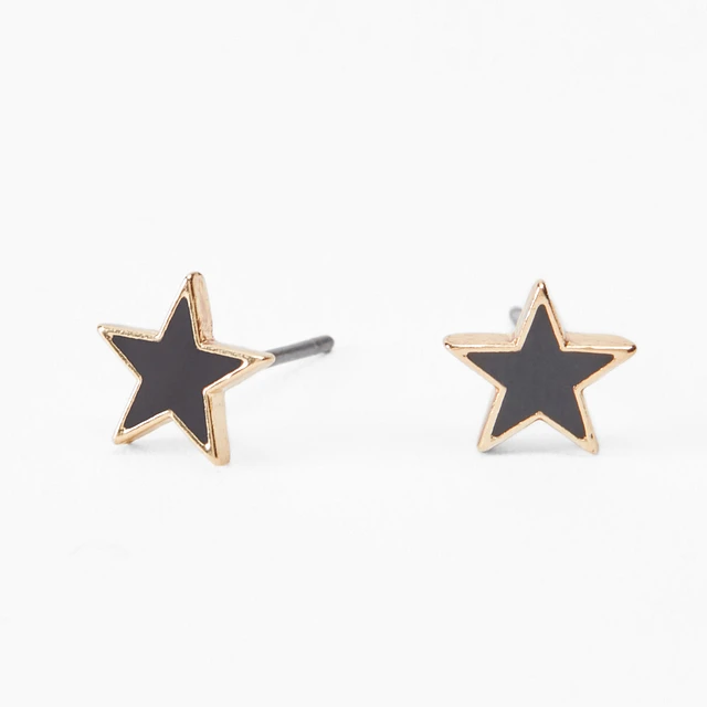Black Star Gold-tone Stud Earrings